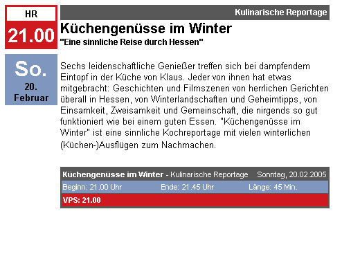 Ich begleite die Dreharbeiten zu "Wintergenüsse aus Hessen" (im HR Fernsehen 20.2.2005 20:00) |