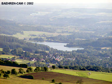 Die Freiherren zu Riedesel beschlossen einst, Fische zu züchten. Dazu legten sie im 16. Jahrhundert am Südhang des Vogelberges diesen See an. Mit 30 ha bietet er nicht nur Fischen genug Platz zum Schwimmen. Das blaugrüne Wasser hat wegen des lehmigen Grundes einen Stich ins Braune. | ||